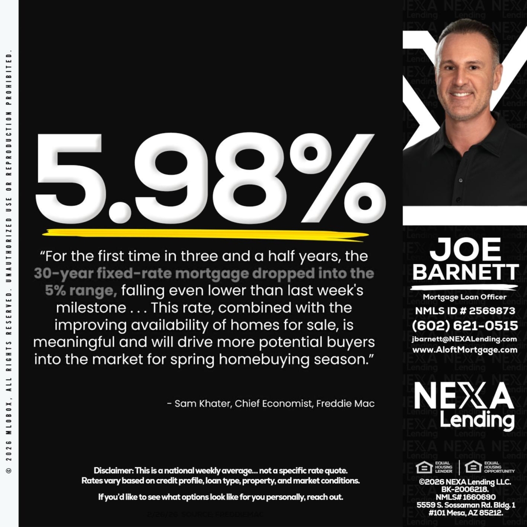 Hi, my name is Joe Barnett. I’m a Loan Officer with NEXA Lending LLC., offering personalized mortgage solutions, fast customized quotes, great rates and service with integrity.