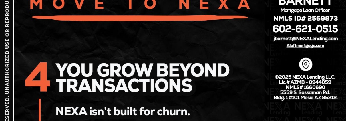 Hi, my name is Joe Barnett. I’m a Loan Officer with NEXA Lending LLC., offering personalized mortgage solutions, fast customized quotes, great rates and service with integrity.