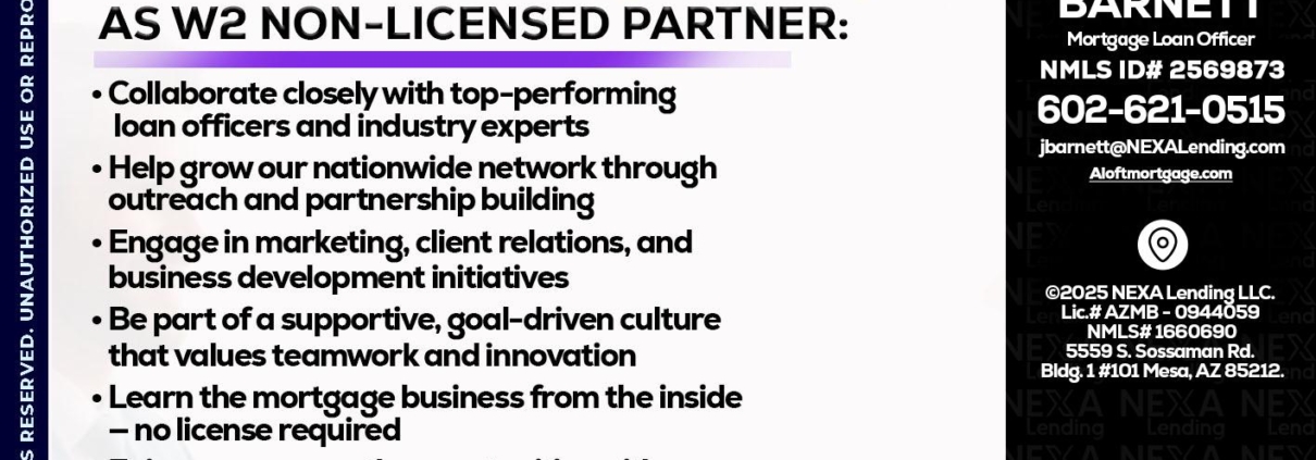 Hi, my name is Joe Barnett. I’m a Loan Officer with NEXA Mortgage LLC., offering personalized mortgage solutions, fast customized quotes, great rates and service with integrity.