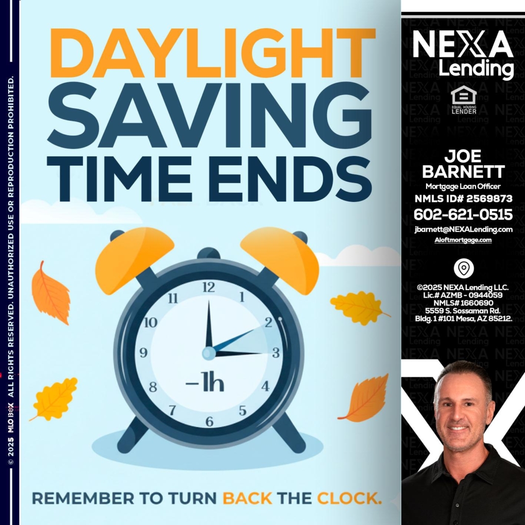 daylight saving - Joe Barnett -Mortgage Loan OfficerHi, my name is Joe Barnett. I’m a Loan Officer with NEXA Mortgage LLC., offering personalized mortgage solutions, fast customized quotes, great rates and service with integrity.