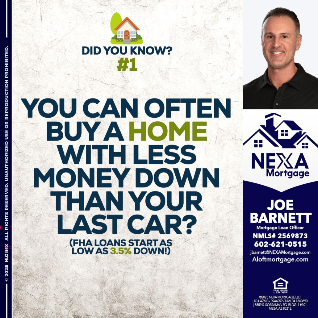 Hi, my name is Joe Barnett. I’m a Loan Officer with NEXA Mortgage LLC., offering personalized mortgage solutions, fast customized quotes, great rates and service with integrity.