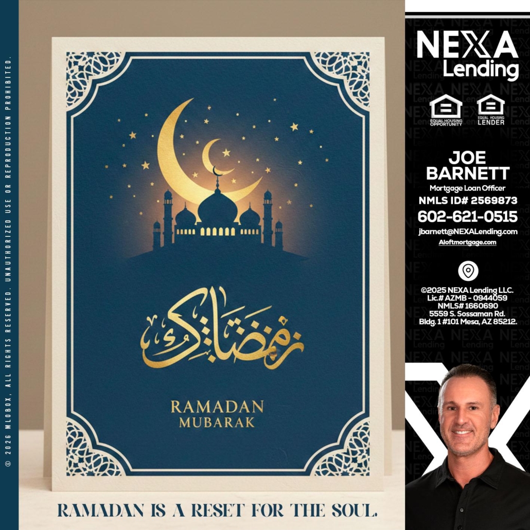 HAPPY RAMADAN - Joe Barnett -Mortgage Loan OfficerHi, my name is Joe Barnett. I’m a Loan Officer with NEXA Lending LLC., offering personalized mortgage solutions, fast customized quotes, great rates and service with integrity.