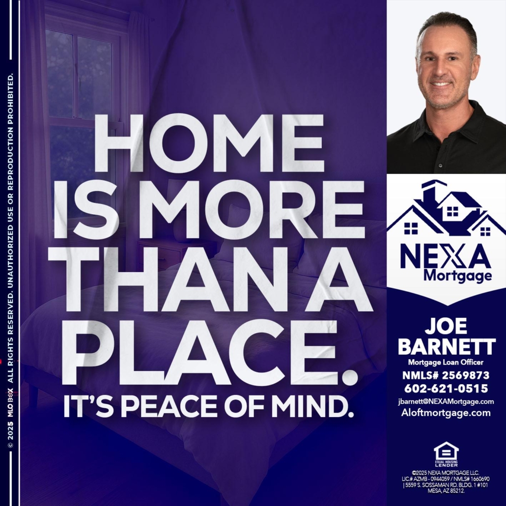 Hi, my name is Joe Barnett. I’m a Loan Officer with NEXA Mortgage LLC., offering personalized mortgage solutions, fast customized quotes, great rates and service with integrity.