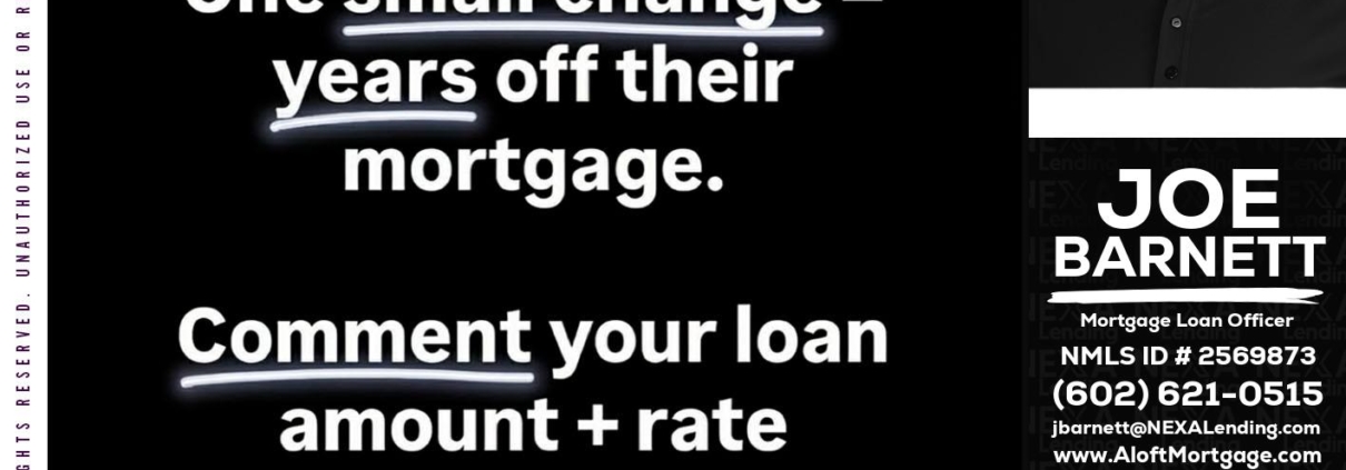 Hi, my name is Joe Barnett. I’m a Loan Officer with NEXA Lending LLC., offering personalized mortgage solutions, fast customized quotes, great rates and service with integrity.