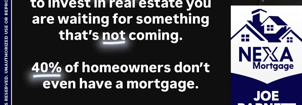 IF YOU ARE WAITING - Joe Barnett -Mortgage Loan OfficerHi, my name is Joe Barnett. I’m a Loan Officer with NEXA Mortgage LLC., offering personalized mortgage solutions, fast customized quotes, great rates and service with integrity.