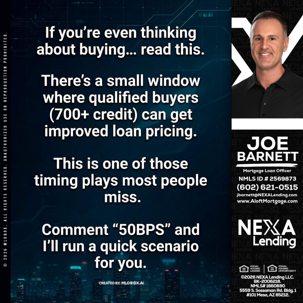 Hi, my name is Joe Barnett. I’m a Loan Officer with NEXA Lending LLC., offering personalized mortgage solutions, fast customized quotes, great rates and service with integrity.