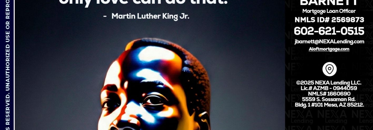 MLK 2026 - Joe Barnett -Mortgage Loan OfficerHi, my name is Joe Barnett. I’m a Loan Officer with NEXA Lending LLC., offering personalized mortgage solutions, fast customized quotes, great rates and service with integrity.