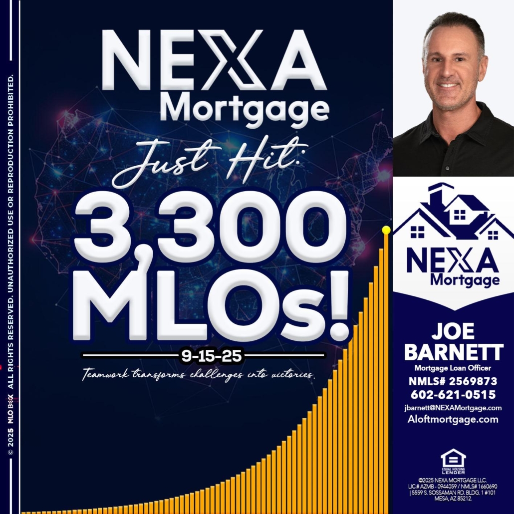 Hi, my name is Joe Barnett. I’m a Loan Officer with NEXA Mortgage LLC., offering personalized mortgage solutions, fast customized quotes, great rates and service with integrity.