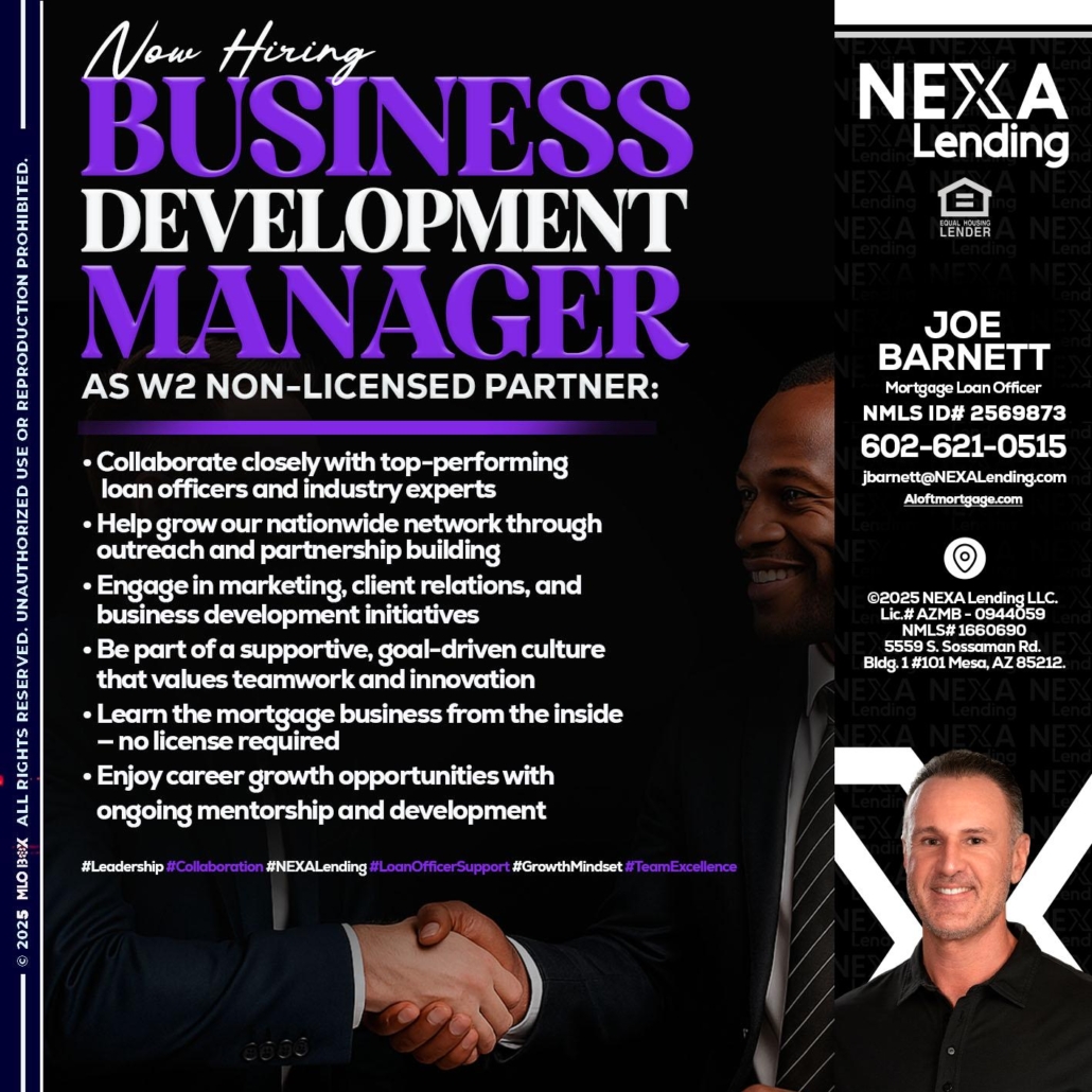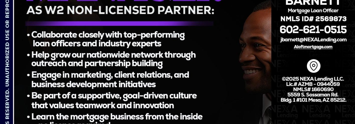 Hi, my name is Joe Barnett. I’m a Loan Officer with NEXA Mortgage LLC., offering personalized mortgage solutions, fast customized quotes, great rates and service with integrity.