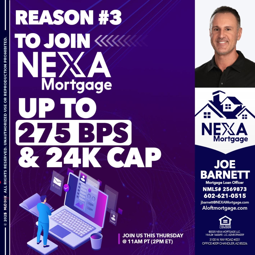 REASON 3 - Joe Barnett -Mortgage Loan OfficerHi, my name is Joe Barnett. I’m a Loan Officer with NEXA Mortgage LLC., offering personalized mortgage solutions, fast customized quotes, great rates and service with integrity.