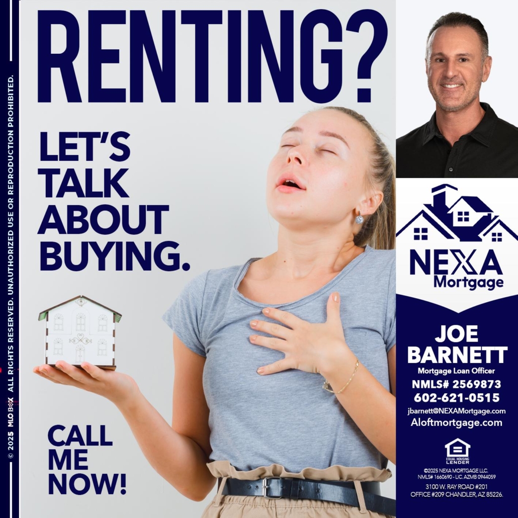 Hi, my name is Joe Barnett. I’m a Loan Officer with NEXA Mortgage LLC., offering personalized mortgage solutions, fast customized quotes, great rates and service with integrity.