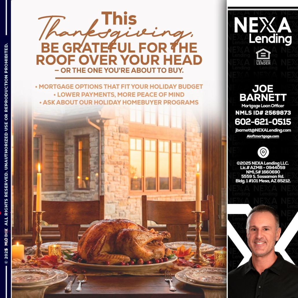 Hi, my name is Joe Barnett. I’m a Loan Officer with NEXA Mortgage LLC., offering personalized mortgage solutions, fast customized quotes, great rates and service with integrity.