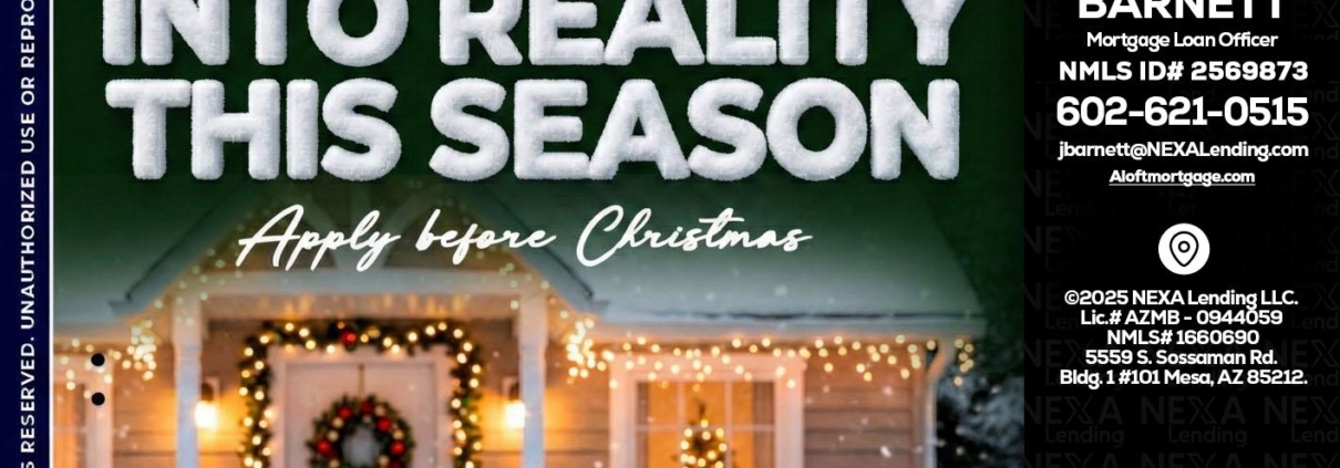 Hi, my name is Joe Barnett. I’m a Loan Officer with NEXA Lending LLC., offering personalized mortgage solutions, fast customized quotes, great rates and service with integrity.