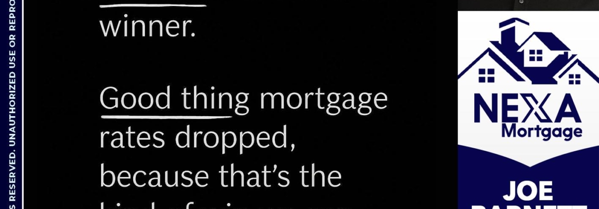 TURNS OUT - Joe Barnett -Mortgage Loan OfficerHi, my name is Joe Barnett. I’m a Loan Officer with NEXA Mortgage LLC., offering personalized mortgage solutions, fast customized quotes, great rates and service with integrity.