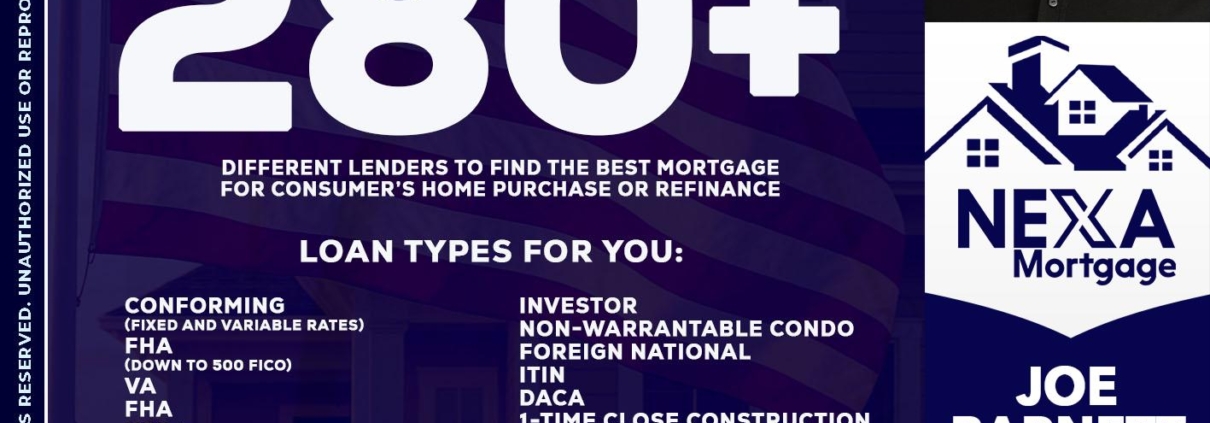 Hi, my name is Joe Barnett. I’m a Loan Officer with NEXA Mortgage LLC., offering personalized mortgage solutions, fast customized quotes, great rates and service with integrity.