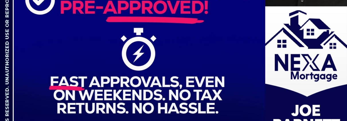 Hi, my name is Joe Barnett. I’m a Loan Officer with NEXA Mortgage LLC., offering personalized mortgage solutions, fast customized quotes, great rates and service with integrity.